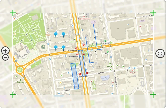 Доступность 99,9%. Бесплатная JS-библиотека для простого добавления карт в приложение. Привычный вид карт 2ГИС, понятный пользователям.